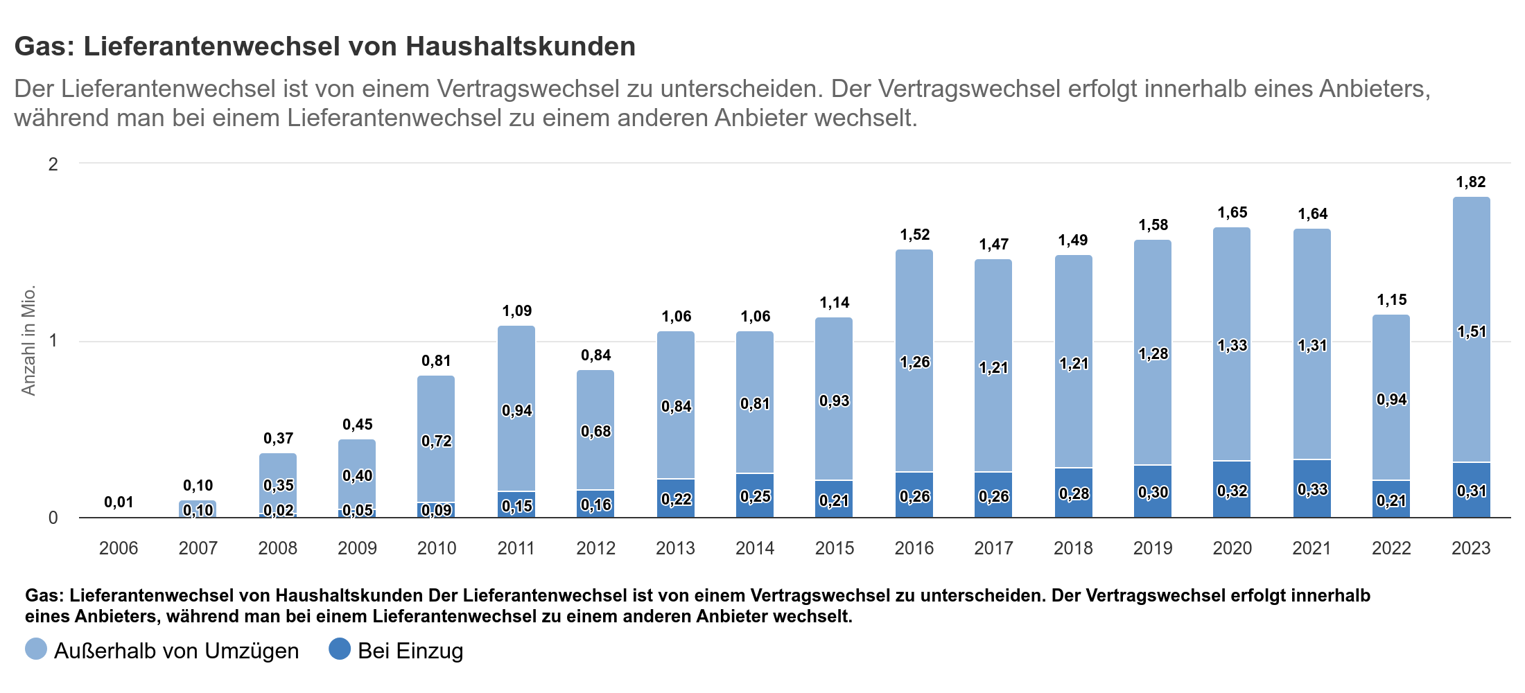 Anzahl der Wechsel von Haushaltskunden zu anderen Gas-Anbieter, veröffentlicht auf www.smard.de.