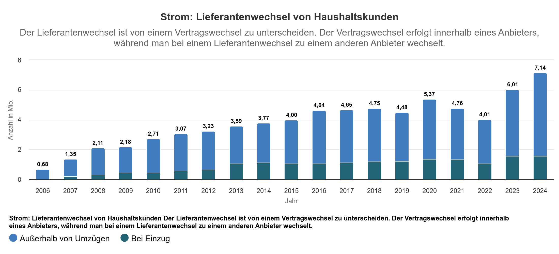 Anzahl der Wechsel von Haushaltskunden zu einem anderen Strom-Anbieter, veröffentlicht auf www.smard.de